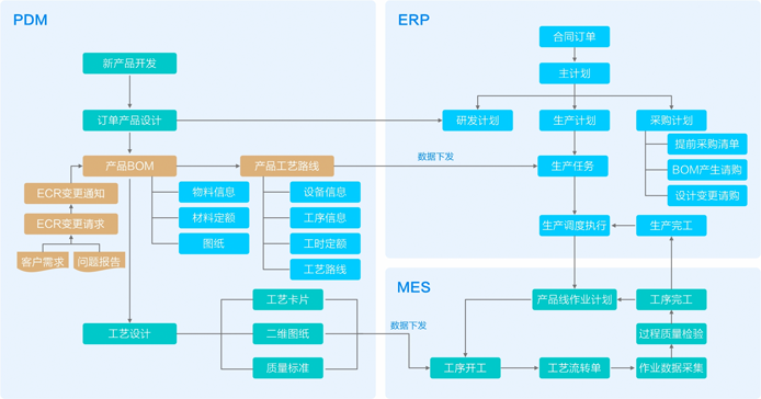 以設(shè)計(jì)制造一體化深度協(xié)同作為數(shù)字化轉(zhuǎn)型的切入點(diǎn),推動(dòng)汽車主機(jī)廠由以產(chǎn)品為中心向以客戶為中心轉(zhuǎn)變。關(guān)注市場(chǎng)需求、市場(chǎng)份額、技術(shù)領(lǐng)先性、產(chǎn)品研制周期,通過拉通PDM與ERP和MES系統(tǒng),實(shí)現(xiàn)EBOM、PBOM、MBOM以及工藝文件的快速轉(zhuǎn)換與信息同步。保障生產(chǎn)制造數(shù)據(jù)的一致性與準(zhǔn)確性,實(shí)現(xiàn)制造主數(shù)據(jù)的貫通與共享。