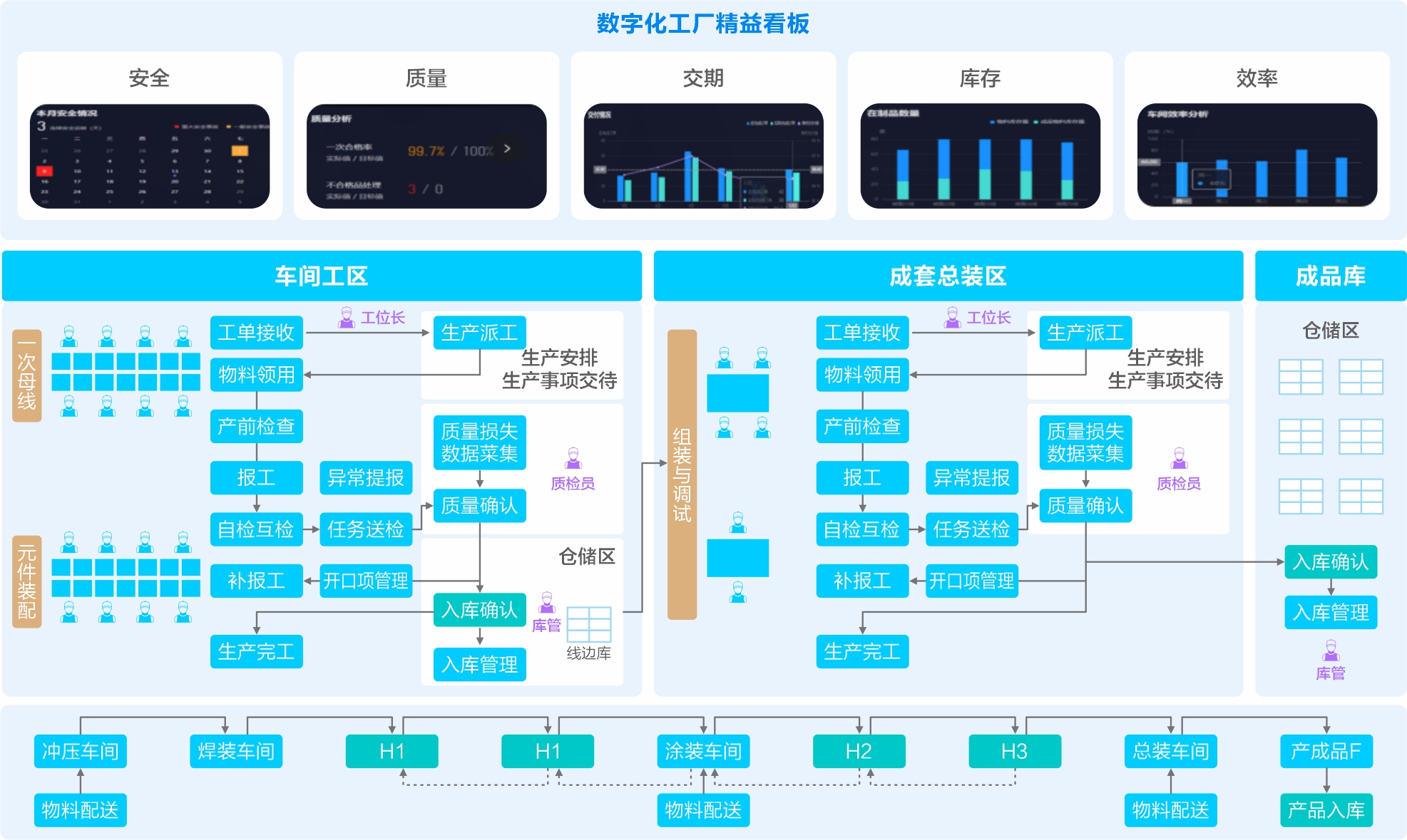 數(shù)字化生產(chǎn)融入精益與敏捷制造的管理思想,實(shí)現(xiàn)精益計(jì)劃、柔性調(diào)度、JIT生產(chǎn)模式下精準(zhǔn)配送、產(chǎn)線的準(zhǔn)時(shí)開工完工