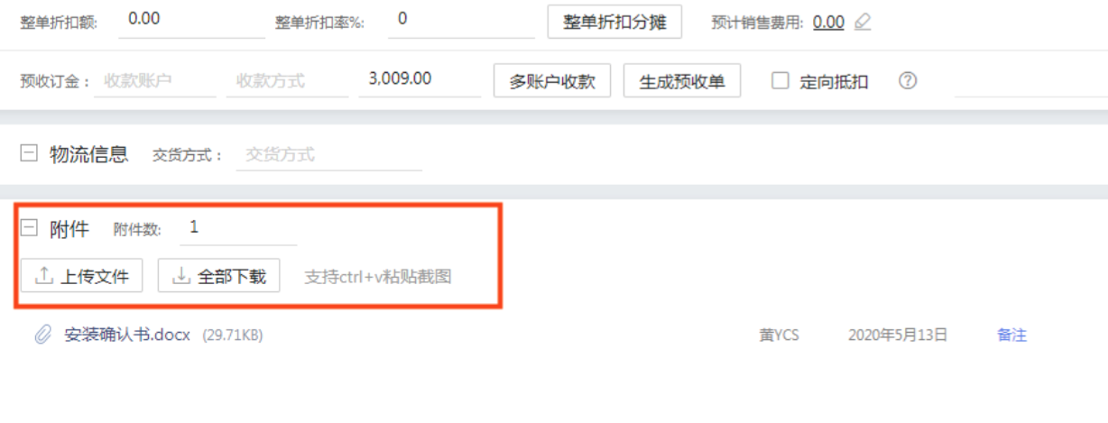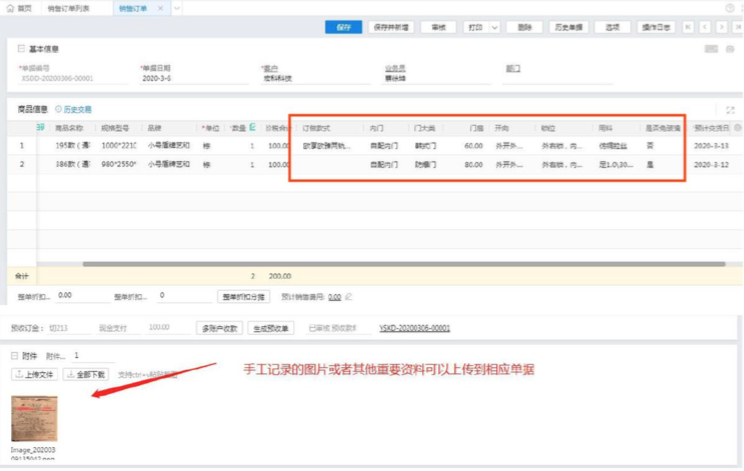 場景:家居建材產(chǎn)品常常涉及到安裝問題,工作人員安裝完成后,需要記錄下安裝確認,以預防不必要糾紛 解決方案:單據(jù)支持上傳附件,可以上傳客戶確認過的安裝證明,或安裝好的家居圖片皆可上傳附件作為記錄;