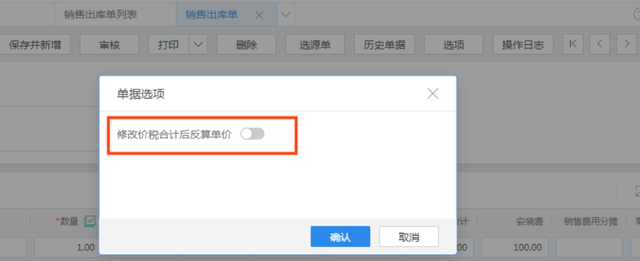 場景:家居建材產(chǎn)品常常涉及到安裝,由此需要收取一定的安裝費用,但又不能隨便修改產(chǎn)品的單價 解決方案:可變通處理,通過關閉“修改價稅合計后反算單價”參數(shù),再修改價稅合計,則不影響此前設置的單 價,如原單價1000,價稅合計1130,關閉該參數(shù)后,價稅合計修改為1230,單價依然為1000,也可通過負折 扣實現(xiàn)在價稅合計中增加安裝費的場景;