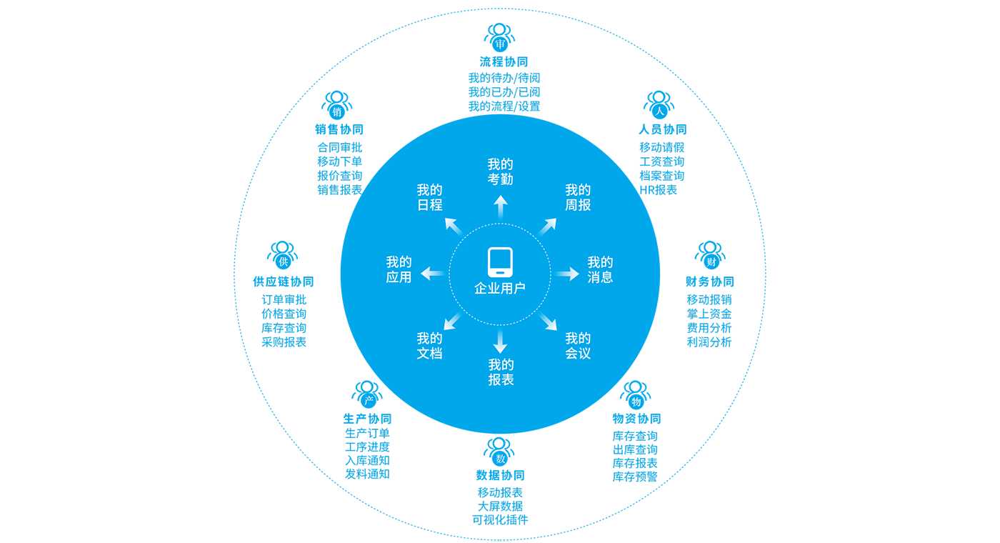 把企業(yè)中的人、信息和業(yè)務(wù)安全、智能的連接起來,讓企業(yè)所有流程協(xié)作全部統(tǒng)一到一起
