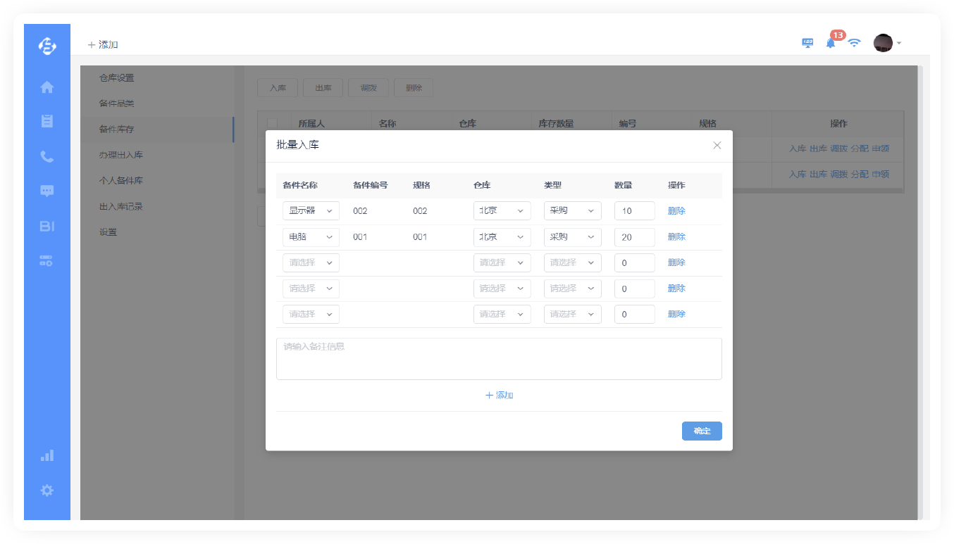 整體管理總部、服務(wù)商、現(xiàn)場工程師的備件庫存,并關(guān)聯(lián)工單。