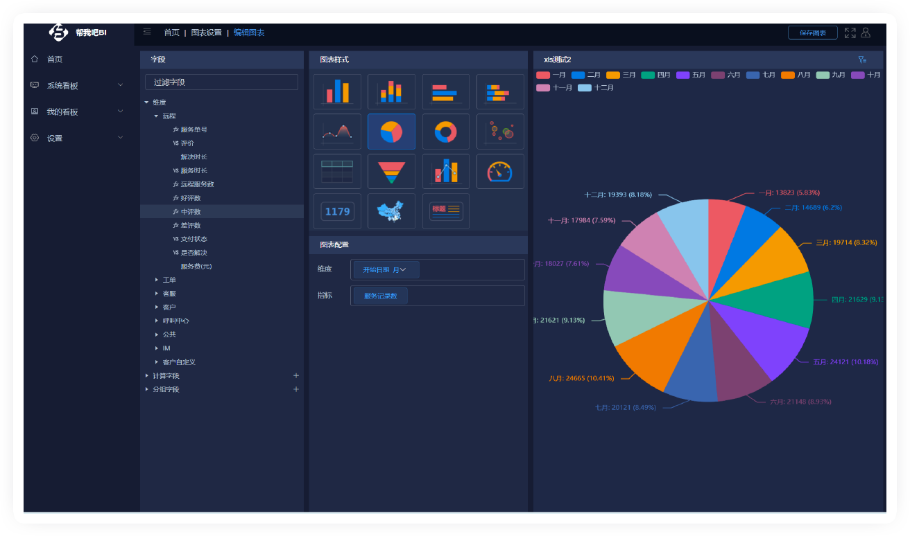 所有報表都可以自定義,拖拉拽極速生成想要的可視化數(shù)據(jù)大屏。